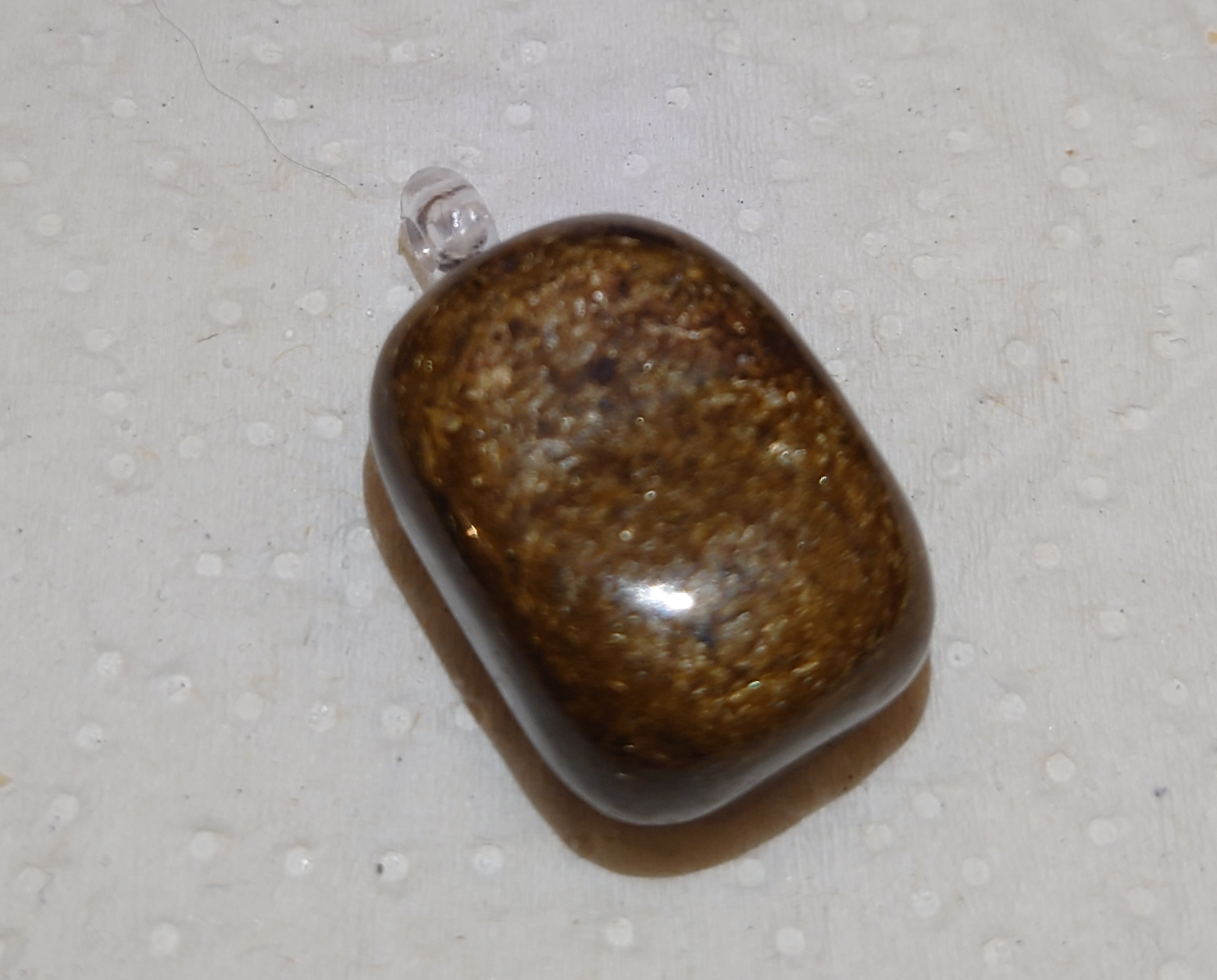 This lovely bronzite pendant, on an antique bronze effect chain, comes in a nice bag with a slip outlining its uses and properties.