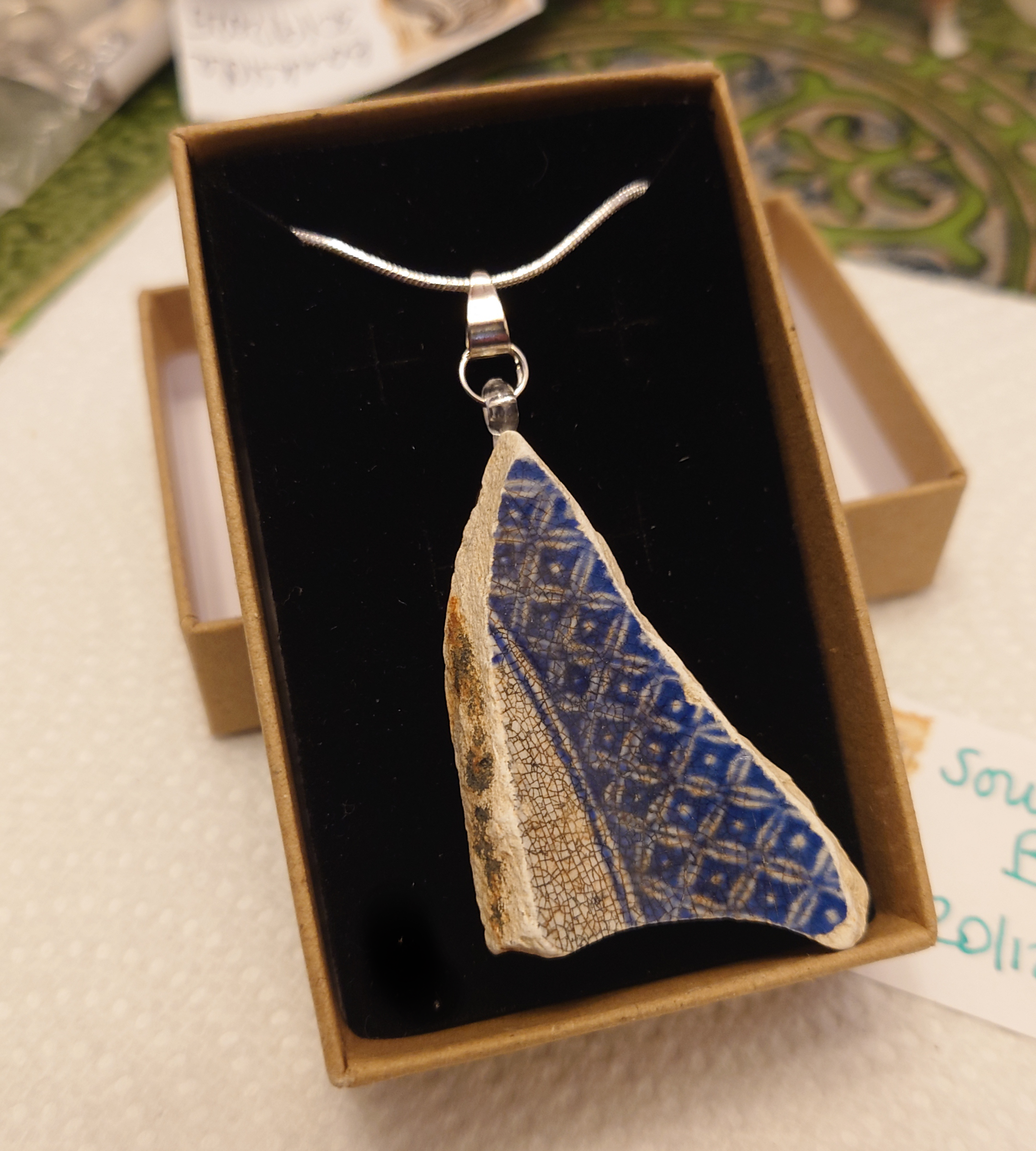 This is absolutely one of my favourite fragments - a smooth, triangular piece of willow pattern china with exquisite crazing. It's on a 50 cm silver chain and in a box because it deserves to be. If you like it, you should probably buy it before I change my mind about selling it...