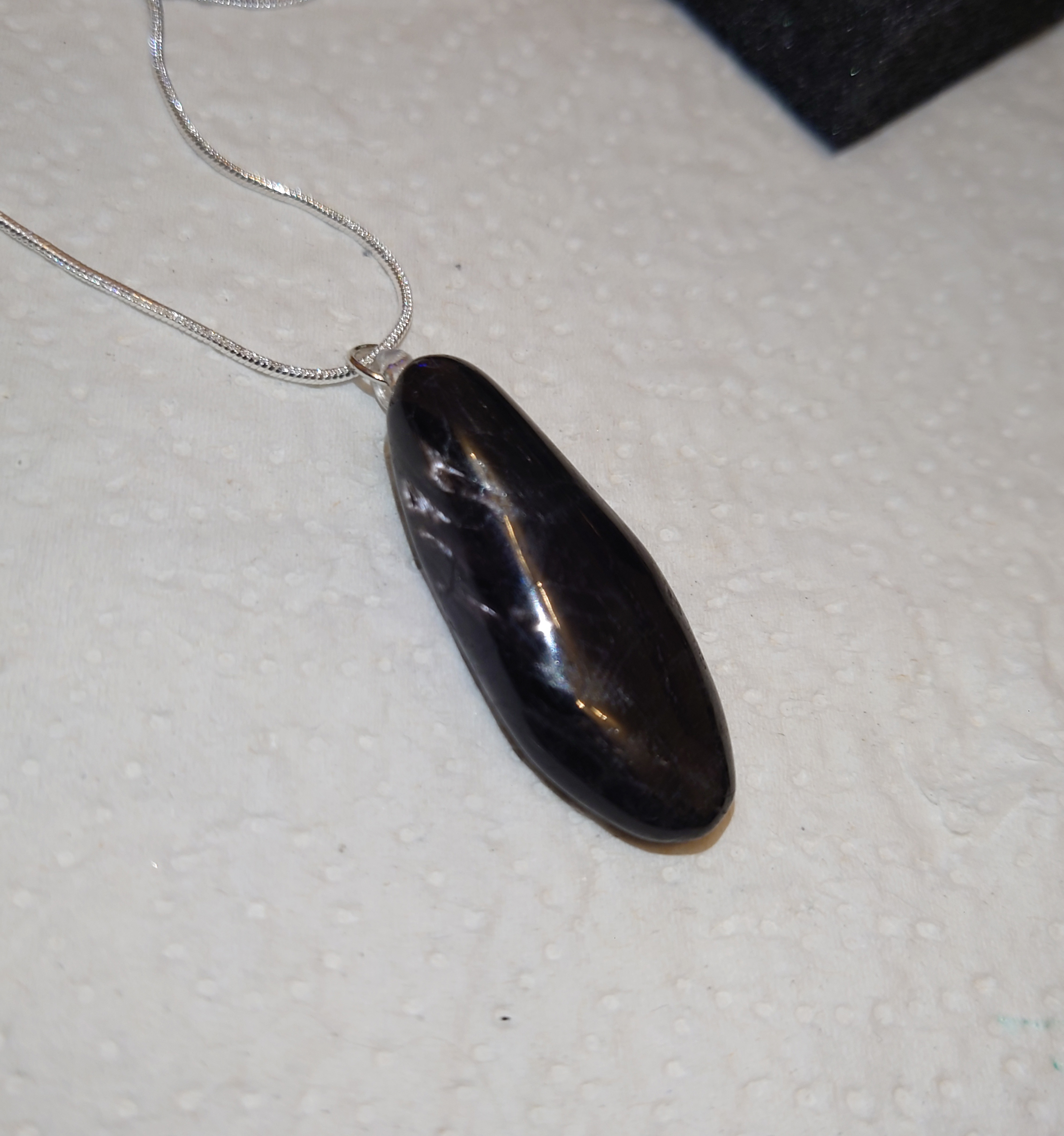 This gorgeous hypersthene pendant, chosen by me for its shine and strong pleochroism, comes on a 50cm silver chain in a nice box. Includes a slip with its uses and properties.